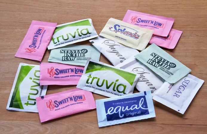 So this would be something that gives the food sweet taste without being sugar. Remember I said we get excitement by eating sugar? This is sometimes described as a sugar rush. 吃糖之后的兴奋感在英文里有一个词叫sugar rush.