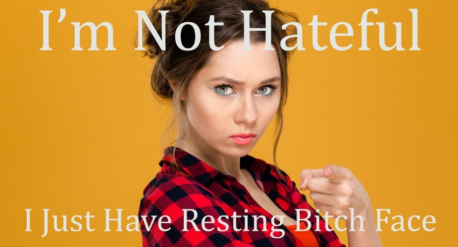 Resting face / resting blank face – a neutral face that people may wrongly interpret as unhappy.